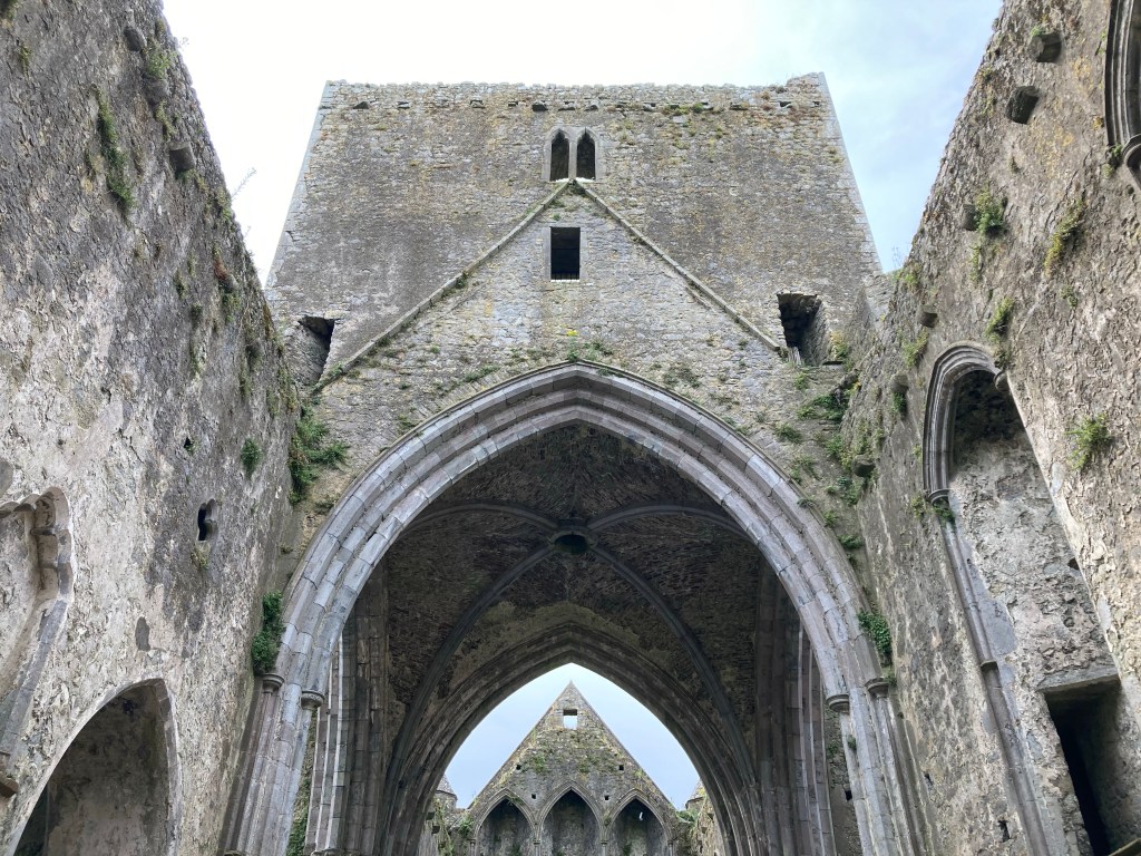 But focus on the positives. The countryside is beautiful. It’s another gorgeous day. And soon we make it to the Rock of Cashel, where there was formerly a castle that was later turned into a cathedral. It’s a ruin nowadays, but the structure is still pretty intact apart from the roof. We have a little under an hour, which we fill by wandering around the beautiful building, taking in the archways and nooks, the cemetery outside and the impressive walls. In the other direction, there are miles of uninterrupted pasture land, with cows and sheep grazing as far as the eye can see. It’s a little windy, but it’s still sunny, which is a treat.