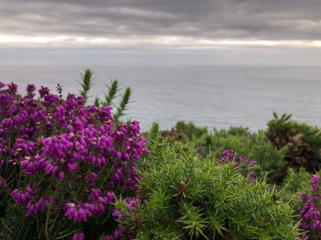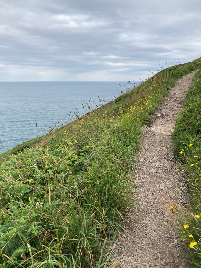 We walk for several hours along the path, probably about six miles meandering along little coves and vistas. In addition to the beauty of the water and the cliffs, the vegetation is also so lush. It smells so green and fresh, all sorts of grasses and flowers blending together into a verdant perfume.