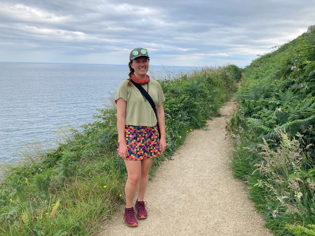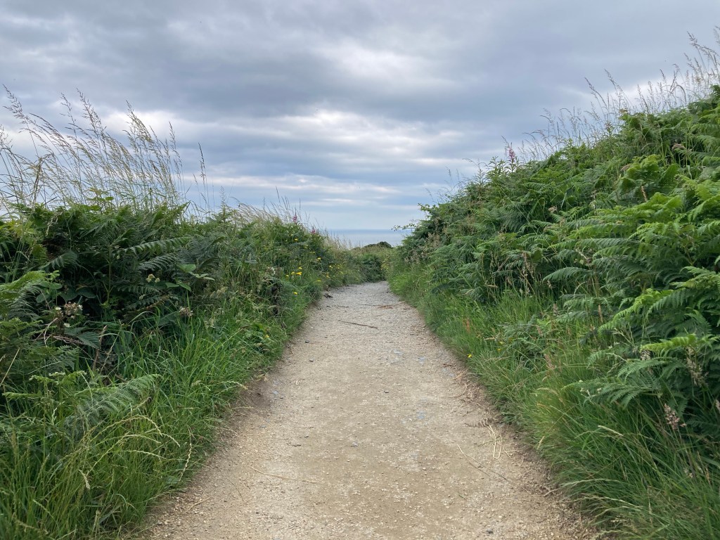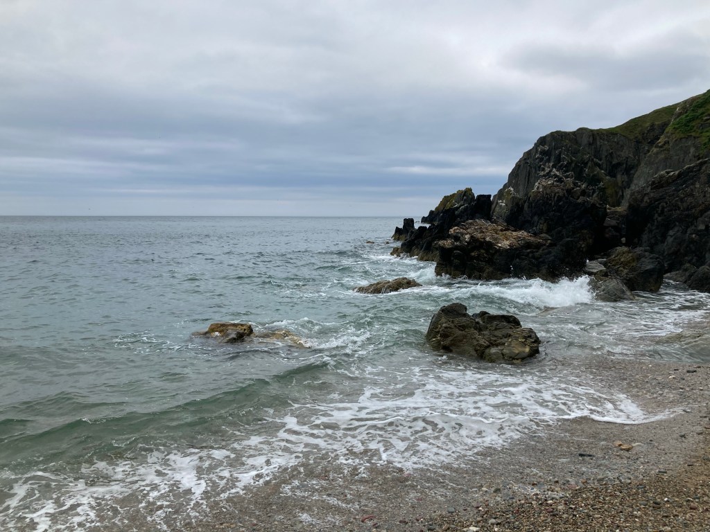 At one point, I come to what is marked on Google Maps as, simply, “A Tiny Hidden Beach.” Curious, I start going down, and then the trail turns steep and then it becomes extremely steep stairs. But it’s worth it; I wind up on what is indeed a very tiny beach at the base of the cliffs. It’s very beautiful down here, though I don’t think it would be a super comfy place to hang out for a while because it’s pebbles rather than sand. Despite this, it appears to be a party location: there’s trash everywhere, some graffiti in a corner, and the remnants of a fire ring. Sigh. Humans are gross no matter what continent you’re on. Still, the water is gorgeous, and the plants hanging on the cliffs, and the sound of the water as it rakes through the pebbly ground.