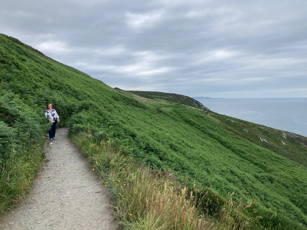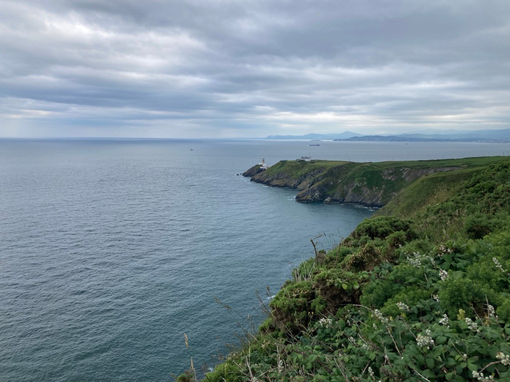 There are a few routes along the coast of Howth. As far as I can tell, they all fall under the umbrella of “Cliff Walk.” The route we opt for first takes us up a steep paved road before it levels out and then climbs again as it turns to dirt. And then the harbor, the cliffs, the town, and the Irish Sea with its crashing waves are in sharp relief. I lose cell service pretty quickly, which is wild considering that Dublin is just around the corner, more or less. It seems you don’t have to go very far to find a wild, windswept seascape in Ireland, and I love that about this country.