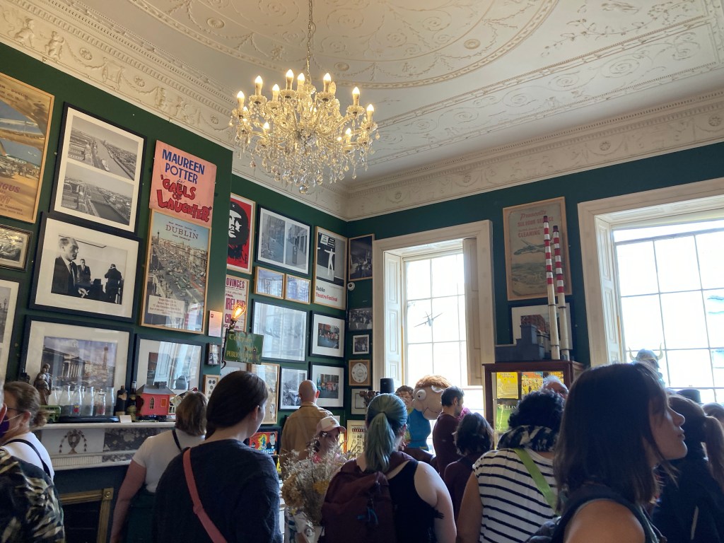 There are really only five main rooms in the museum. The tour starts upstairs in a large, creaky-floored drawing room. There’s a big crowd here, and we all turn in rapt attention as our tour guide, Lisa—short, red-haired, and enthusiastic, dressed in an old-timey dress with a hat and a cane—begins telling us about some of the objects in the museum. It’s fast and humorous and I barely remember any of the actual information, except for something about a duck in St. Stephen’s Green that was spared during the fighting in the Irish Revolution. Or something. In any case, there are some ducks on top of one of the windows now.