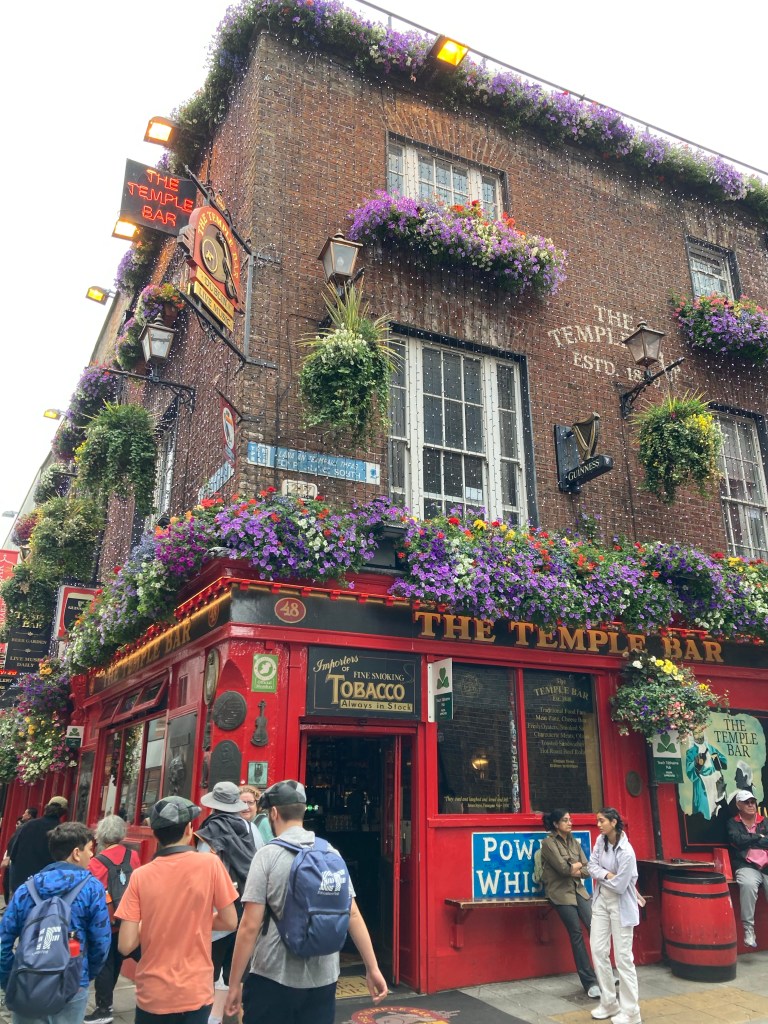 We have a little bit of time until our tour at Guinness, so we walk around Temple Bar, taking a photo of the eponymous pub with its bright red trim and flowers spilling out of every window, nook, and cranny. We pop into a few shops and galleries. In one of the galleries, the owner is extremely nice but also extremely chatty, and he starts telling me about how awesome Americans are except for one place in Texas, and he follows us out the door as we start to walk to the bus stop, but we eventually break away, take yet another bus journey, and all but sprint into the Guinness Storehouse to make it in time for our tour.