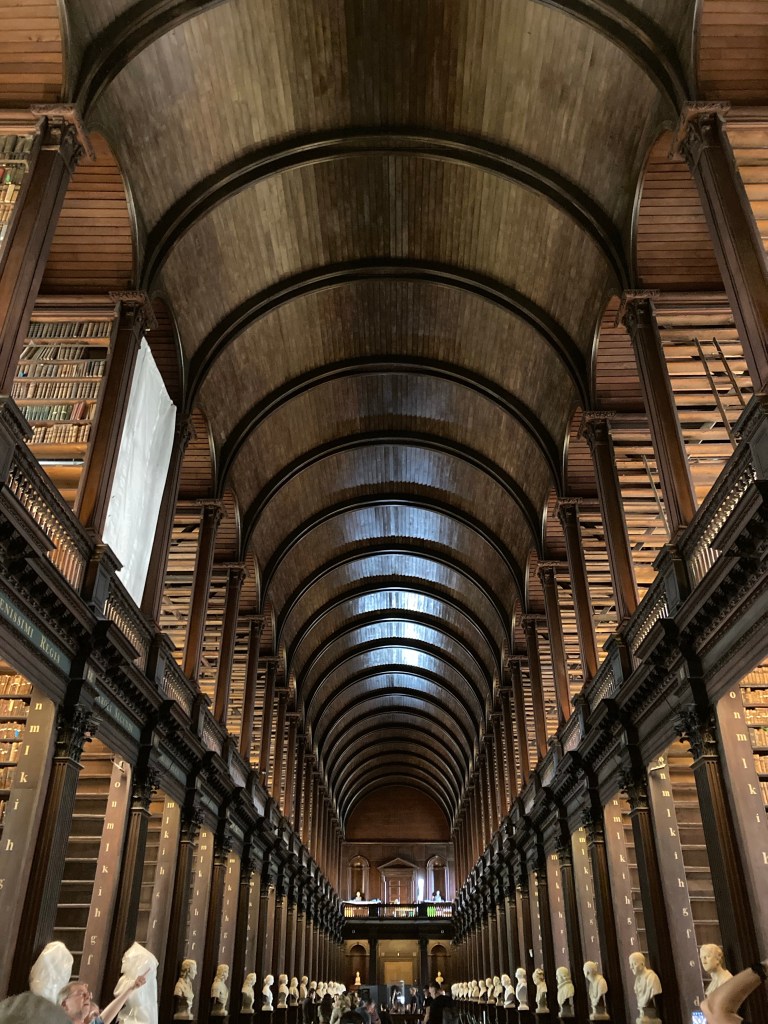 The Book of Kells is the crown jewel in Trinity’s collection. It’s a very old and extremely well-preserved illuminated manuscript that contains the four Gospels. It dates back to about 800 AD, and it’s named for the monastery in which it was created. We don’t get very long to look at it, and there’s only one page open, but just from that glimpse you can see how incredibly intricate the work is and, by how thick the volume is, how long it would have taken to create. Even just being in the presence of such a work inspires a hushed awe.