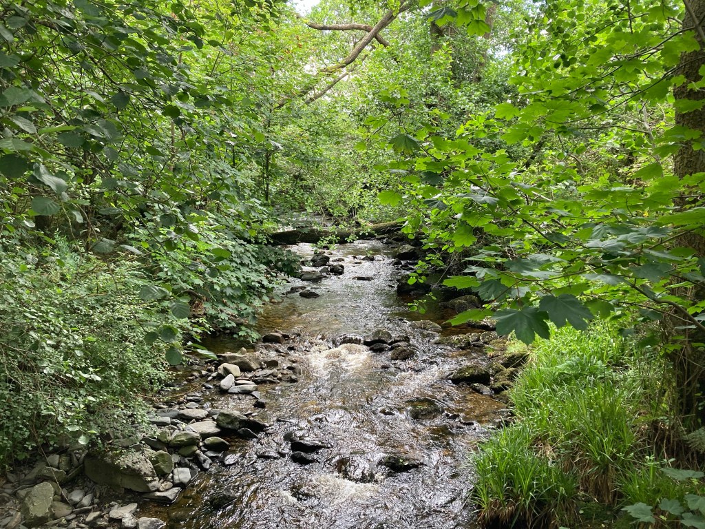 We have a short walk to Inversnaid after that, more slippy rocks and little hills and conversation, and then there is a waterfall and a bridge and I see the white building that is the Inversnaid Hotel. Mash and Will are continuing, but we have basically the same schedule for the trail so I’ll probably see them again.