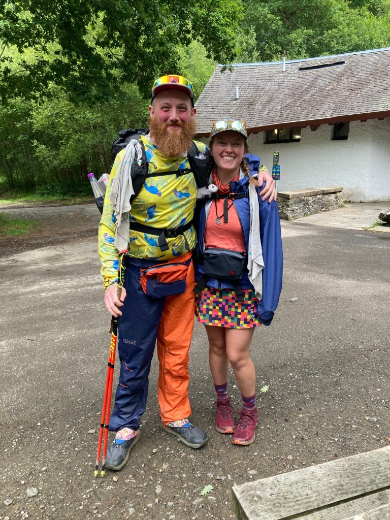 Once we’re all packed, we leave the hotel room behind and head towards the hotel for breakfast. On the way, I look in the coffee shop window and see a bright yellow shirt under a bearded face: a PCT hiker look if I’ve ever seen one. It’s Mash! His group, which we originally called our Stepfamily in the desert but which I have since learned called themselves Elmer, hiked around us for most of the PCT. He’s from Bedford in England and we’d been talking on Instagram prior to this trip about how we were both going to be on the West Highland Way at the same time. We both started yesterday, but at different times, so we knew we’d probably run into each other today.