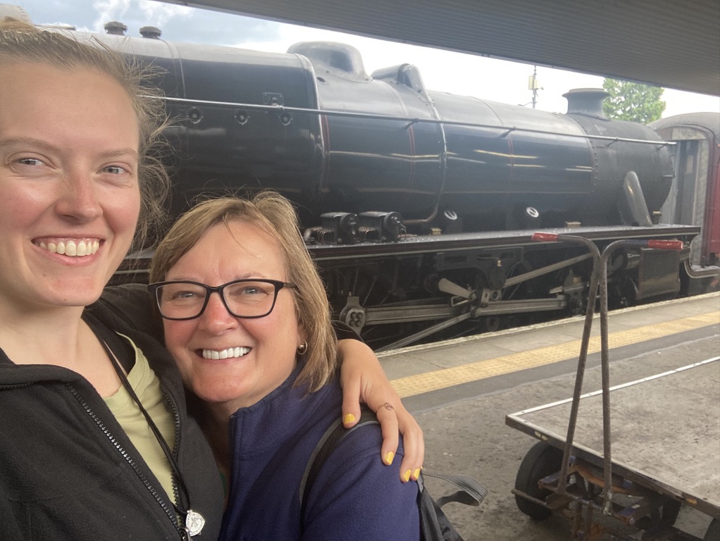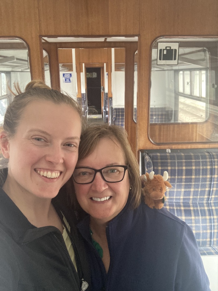 We decide to take a normal ScotRail train to Glenfinnan anyway, though, because there’s a trail that takes you to a viewpoint where you can see the Jacobite train passing, like the Hogwarts Express did in the films. As we’re about to get on our actual train, we see the Jacobite at the station, along with a sign reading “queue for tickets here.” That seems to imply that there are tickets remaining. No harm in asking, right? So I ask the worker if there are tickets left, and she says yes, for standard class, and it’s cash only. We have enough to cover it, and we gleefully abandon our original train and board the Jacobite. All aboard the Hogwarts Express!