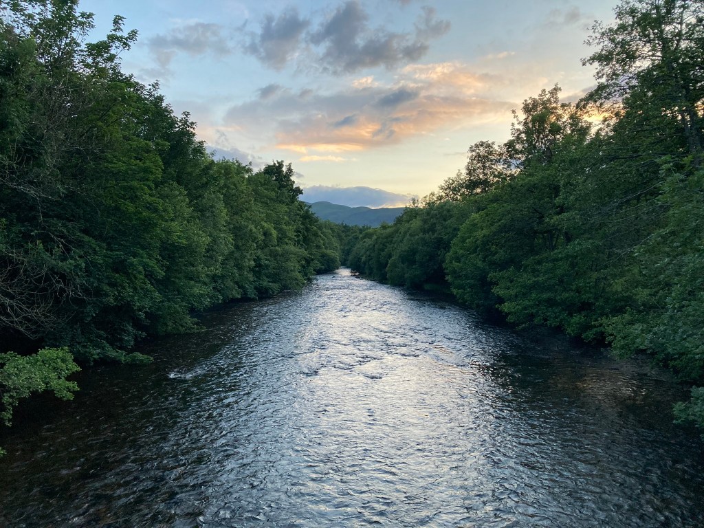 I decide I haven’t moved enough today, and I’ve still got distance on my mind, and I miss being on the trail, so I go for a run. It’s a perfect evening. Beautiful temperature, low light, quiet streets. I head out of Fort William the same way I came in, on the sidewalk along the West Highland Way. Then I wind up on a little path in the woods for a bit, and spot a bridge, and stand on it for a while, looking at the creek it spans.