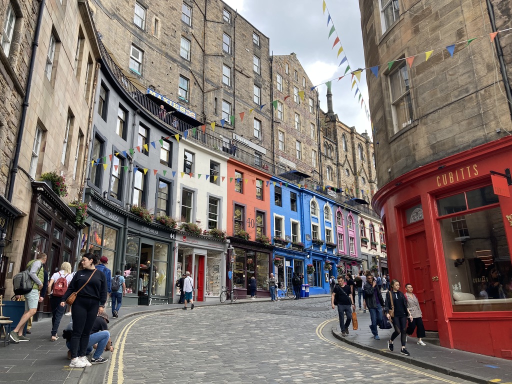 For a while, anyway. Chilling has its limits. We have things to see today. The list starts with another meander down Victoria Street and the Royal Mile. Yesterday I spotted a version of Harry Potter and the Philosopher’s Stone “translated” into Scots, and Hermione and I cracked up while reading it. My best friend Monica collects versions of Harry Potter books in different languages, so naturally I buy a copy for her. (Hopefully she’s gotten it by now and these aren’t spoilers. But Monica, if you’re reading this, what are you doing? Shouldn’t you be studying for the bar?)