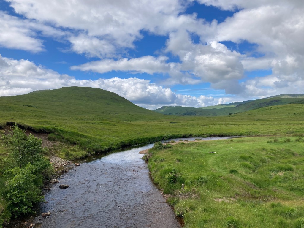 Right after that we start the Parliamentary Road section, which was created in the early 1800s and was part of a huge project to establish long-distance roads through the Highlands. It’s tightly packed rocks sort of like cobblestones. From the way Mash talks about it, it seems like some hikers dread this section, but it doesn’t seem bad at all to me. It follows some woodlands for a while, then empties out once again into a sweeping landscape that is hard, impossible, to take in.