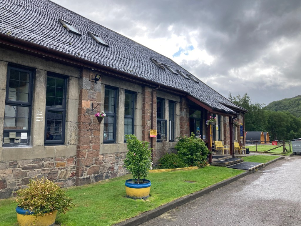 Before long we come to Inverarnan, which has yet another “wee shop” labeled as such. The guy working there is so enthusiastic, patting us on the back and congratulating us for making it so far on the trail. It’s the closest thing to PCT-level trail angel enthusiasm I’ve seen, and it makes me grin. We get a few snacks, cans of iced coffee, and, naturally, a passport stamp for me.