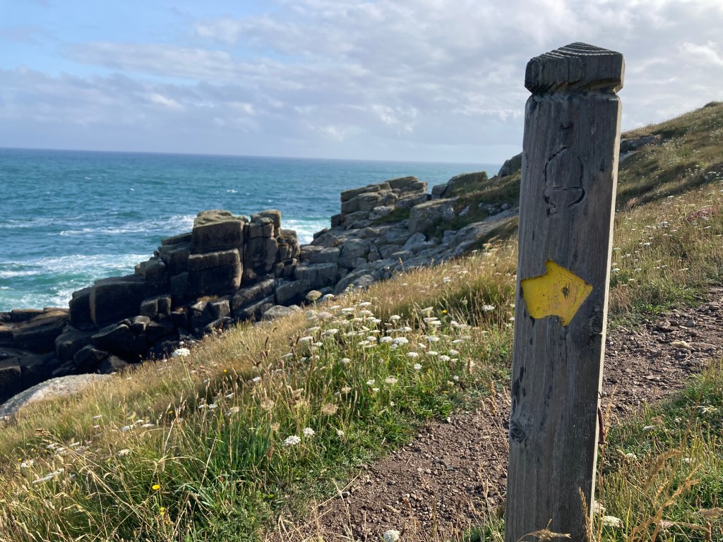 Layers of waves crashing, crashing on the rocks. One after another, white spray thrown into the air. Metaphors enter my mind, of being strong like the shore and the rocks that weather the adversity of water, but I can’t see any adversity here, only joy. Joy, spraying up in the form of saltwater caught in the surprising sunlight that leaps against coastline and sends gulls swaying on the swells. I stand with my arms out to the wind that pushes against me and I feel purified. Salted, as Raynor Winn might put it. And I only hiked five miles along this path. What would 630 do to you? I’m crying as I stand here. Salt spray and tears mingle on my skin. How awesome this world is. Ancient, overgrown, nettly world, I love you, and I love what you can do to a person, and I love how much you can give, and take away, and give back something greater over and over again.