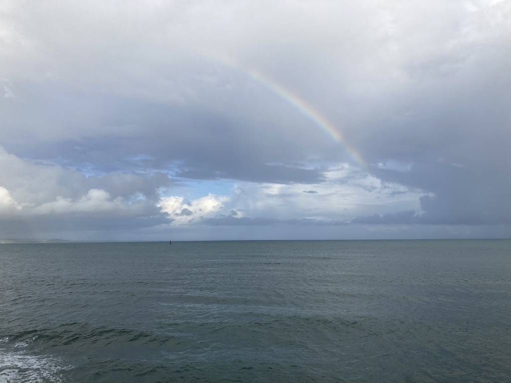 Our plan had been to take the Land’s End Coaster bus around the peninsula today, but it’s almost 5 by now and if we do that we won’t make it back to Mousehole. So we decide instead to just walk the promenade out to Penzance. En route, we pass the Newlyn Art Gallery, but it’s just about closing so it’s only a quick spin through the shop and back to the promenade. It’s a lovely day, high tide, and the water is crashing up against the walls below the walkway. People are walking their dogs. Dogs are so well behaved here. I hardly ever see one one on a leash; they just walk right by their people.