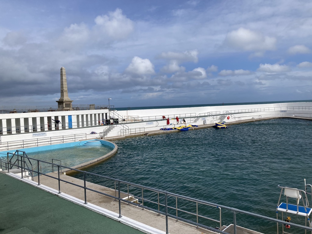 We wind up at the Jubilee Pool, a triangular salt water pool built in the 1930s. There’s a huge regular pool and a smaller geothermal one, one of the earliest in Britain in the modern age (but obviously the Romans beat anyone to this long before at Bath). Past that, it’s a bustling knot of people either going to or returning from the Isles of Scilly off the coast, and the traffic makes me so glad that we didn’t attempt to drive here.