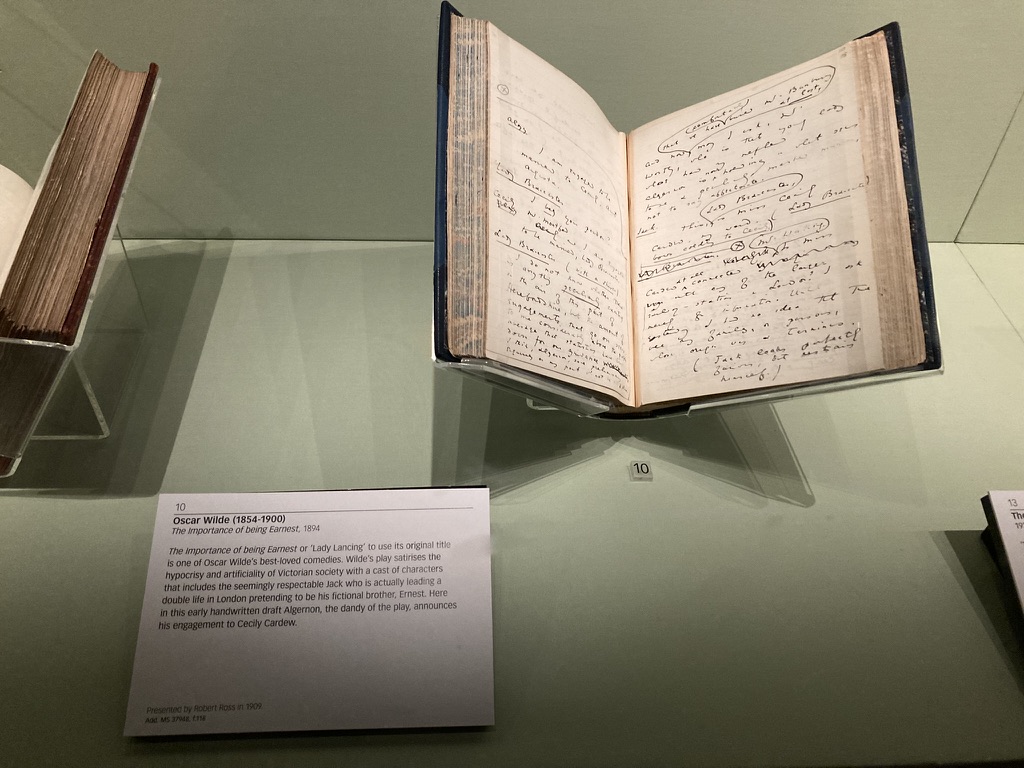 We have some time in the evening before things start closing, and the place we choose to visit is the British Library. It’s one spot I’ve never had a chance to see and oh, man. When I get there, and I’m standing in the Treasures of the British Library expedition—staring at an early draft of Sylvia Plath’s poem “Mushrooms” and a version of The Importance of Being Earnest in Oscar Wilde’s handwriting and the draft of Middlemarch that George Eliot sent to her publisher—it’s all I can do to keep my mouth from hanging open.
