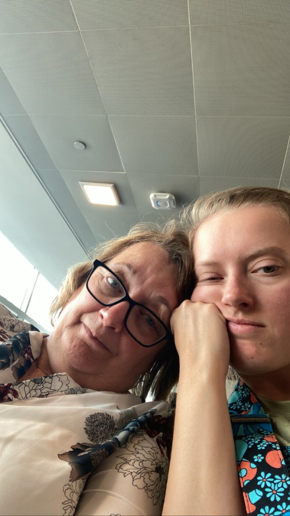 It’s been a long time since I’ve had a flight totally cancelled on me, and I sort of don’t really know what to do first. Mom suggests that it might be better to talk to someone directly, which I start to see as very wise once I begin looking through the app and finding only flights the next day that have two or more connections. The line for the in-person customer service desk is extending all the way down the hallway, though, suggesting that ours was just one of many flights that got cancelled. I end up talking to an agent on the phone, and she rebooks us for a flight tomorrow morning from LaGuardia.