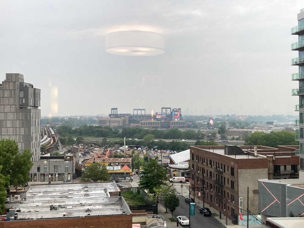 In the morning we have breakfast and then get the free shuttle to the airport. There are two women on the shuttle with us that I presume to be mother and daughter. We’re passing Citi Field, where the Mets play, which has a very large and prominent Citi Bank logo, and the mother asks the driver, “Is that field sponsored by Citi Bank or something?” Mom and I share a look.