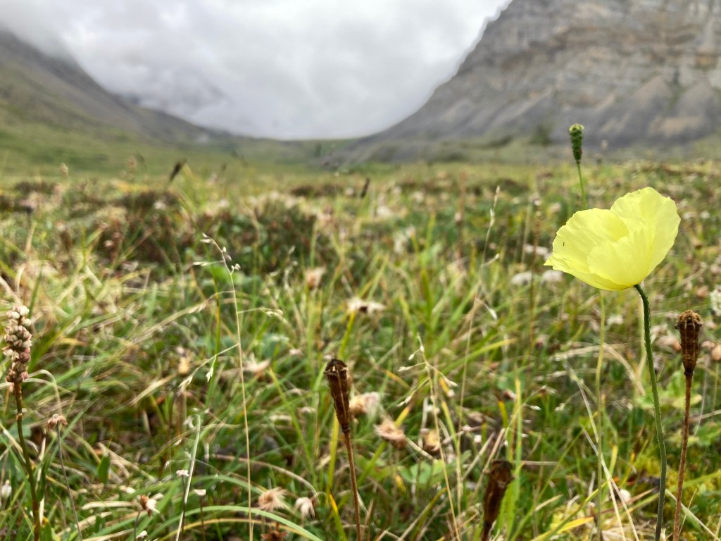 There’s a small incline as we turn right and work our way up the next section. It becomes hard-packed ground strewn with flowers and mosses. No bog here. Carrot recalls how Andrew Skurka, a big-time hiker dude and superathlete famous in our little world, described a certain flower as being indicative of “good walking” in the Brooks. We think we see that flower, so it seems to be an indicator we’re on the right track.