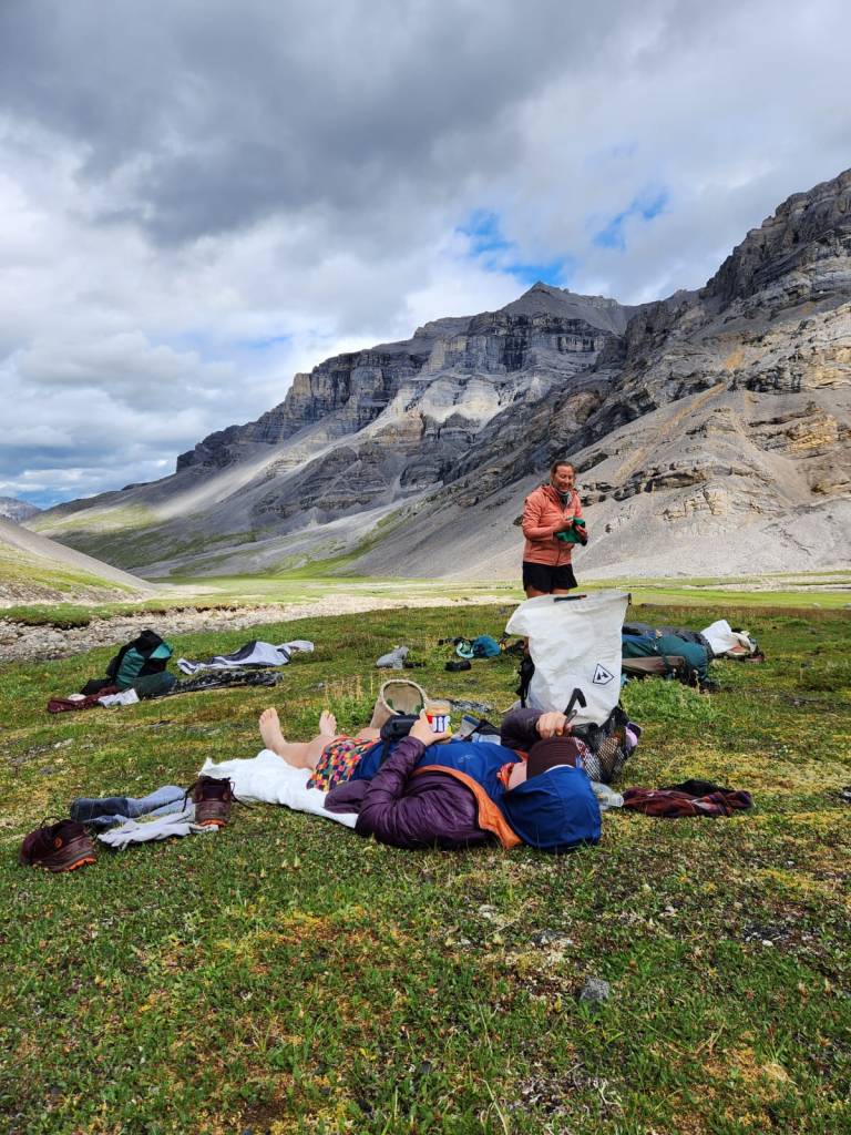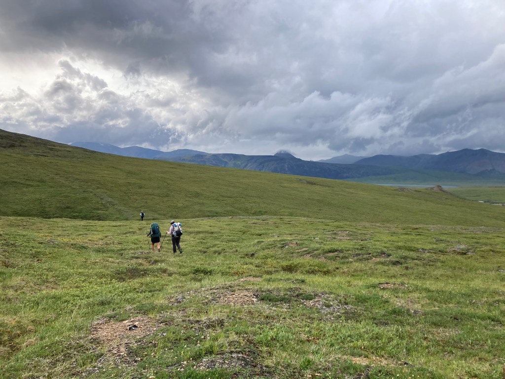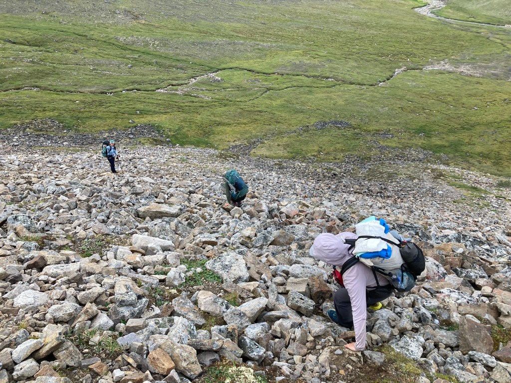 I want to hang out with this little friend but alas we are so close to camp. Just one more toe! I walk through another damn bog with its evil hairy basketball tussocks and start up the climb. Gahl, Chelsea, and I are so loopy that we begin to make jokes about nothing and laugh way too hard at them. “This is the biggest toenail bed I’ve ever seen,” Gahl comments when the slope absolutely refuses to end.