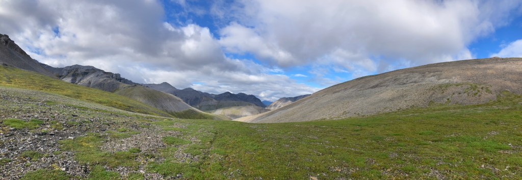 It’s mosquito hell so I wind up cooking as fast as I can and then going into my tent to eat. When I finish and take my bear bag over to the pile, the sudden cathole urge hits me. Ughhh, are you kidding? All I want to do is sleep. But when nature calls and all that. So I crankily trudge over to the far side of the hill. I realize I forgot my trowel. No time now. I pull up whole clumps of mossy earth with my hands. This is about the only environment where you could get away with this and I find myself suddenly loving the tundra.