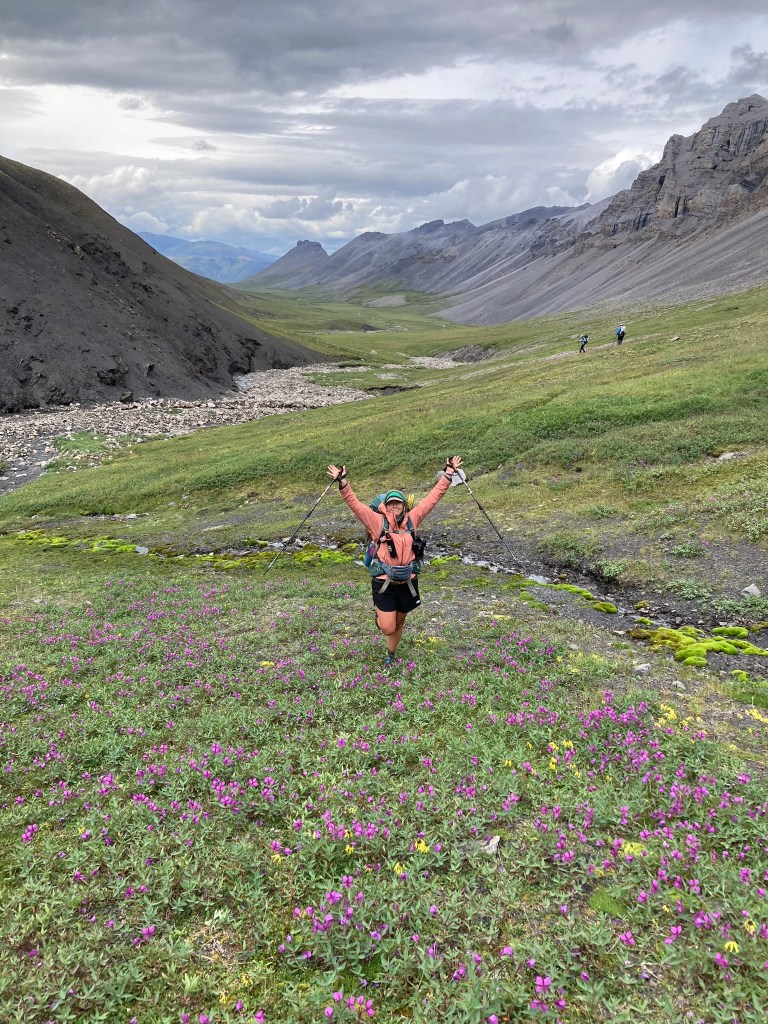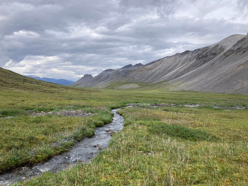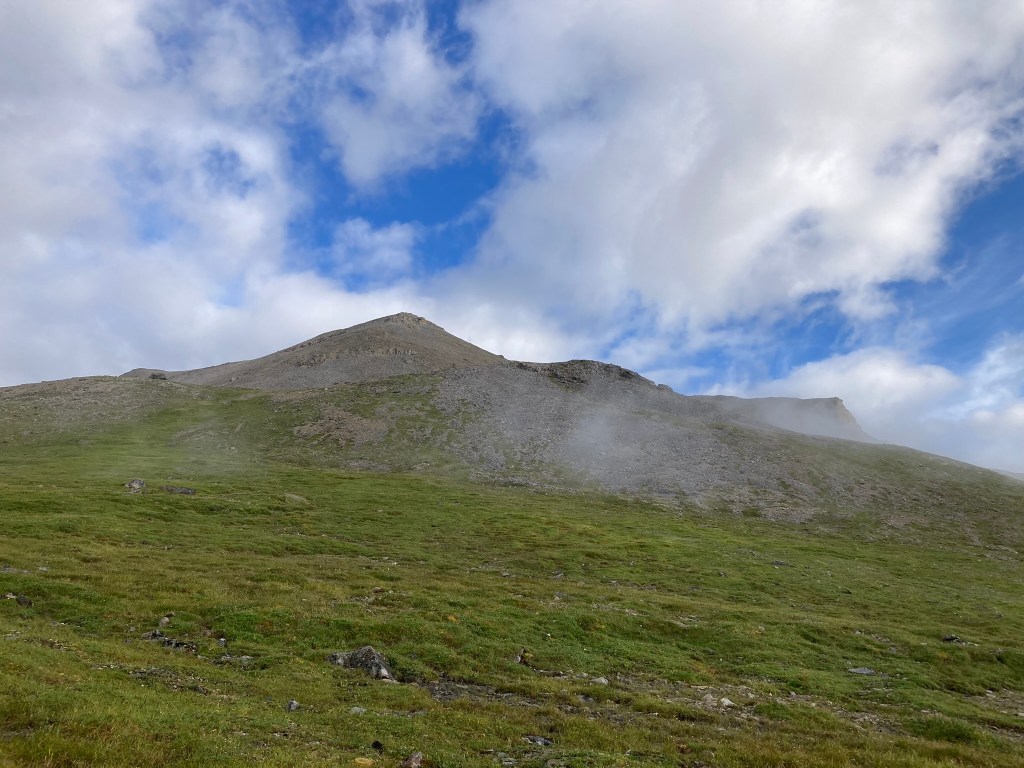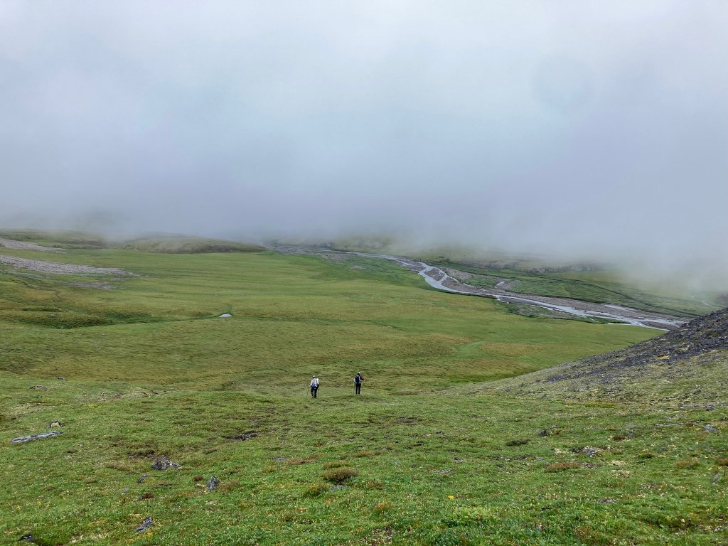 Afterwards, walking back to the tent, the sun pops out and the entire world is illuminated. Settled in for the night, emptied out, and with no pack to weigh me down, I feel as though the veil has been lifted from my eyes and I can actually enjoy this landscape. It is brutal and harsh up here, even in the summer. I can’t imagine the winter. But it has such beauty. The gray mountains, the green bog, the shifting clouds. There is so much water everywhere. There are marmots and mystery mammals and so many wildflowers, and rocks betwixt which grows all of the moss. It’s so hard, and I am so tired. But in the bright sunlight of nearly 10:00 PM, I finally feel content.